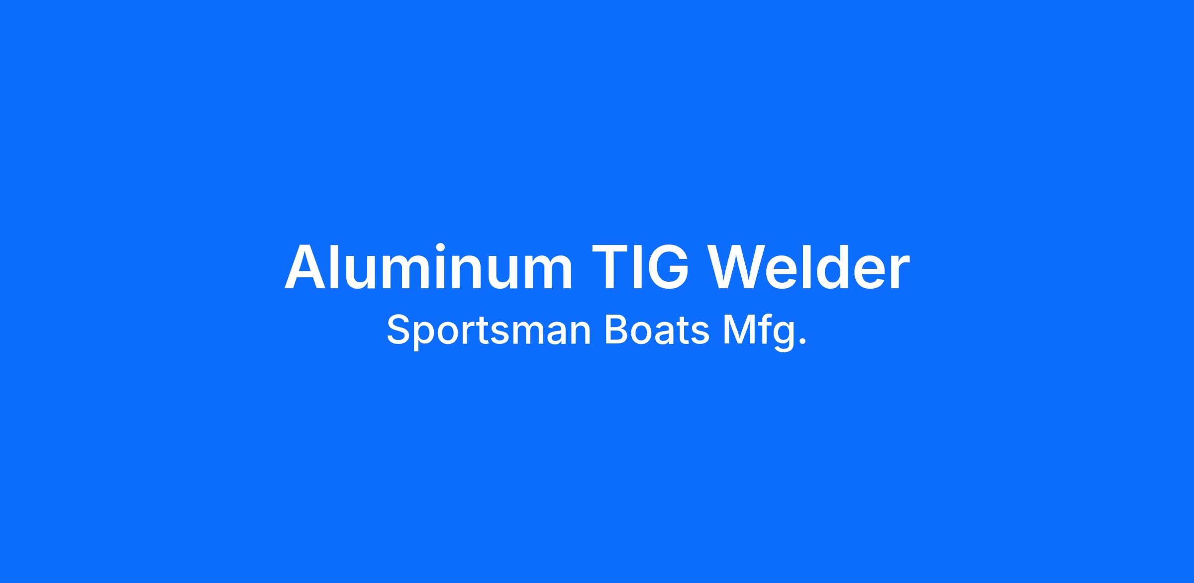 We are looking for an Aluminum TIG welder who will support the manufacturing and fabrication process of Sportsman Boats with emphasis on aluminum.