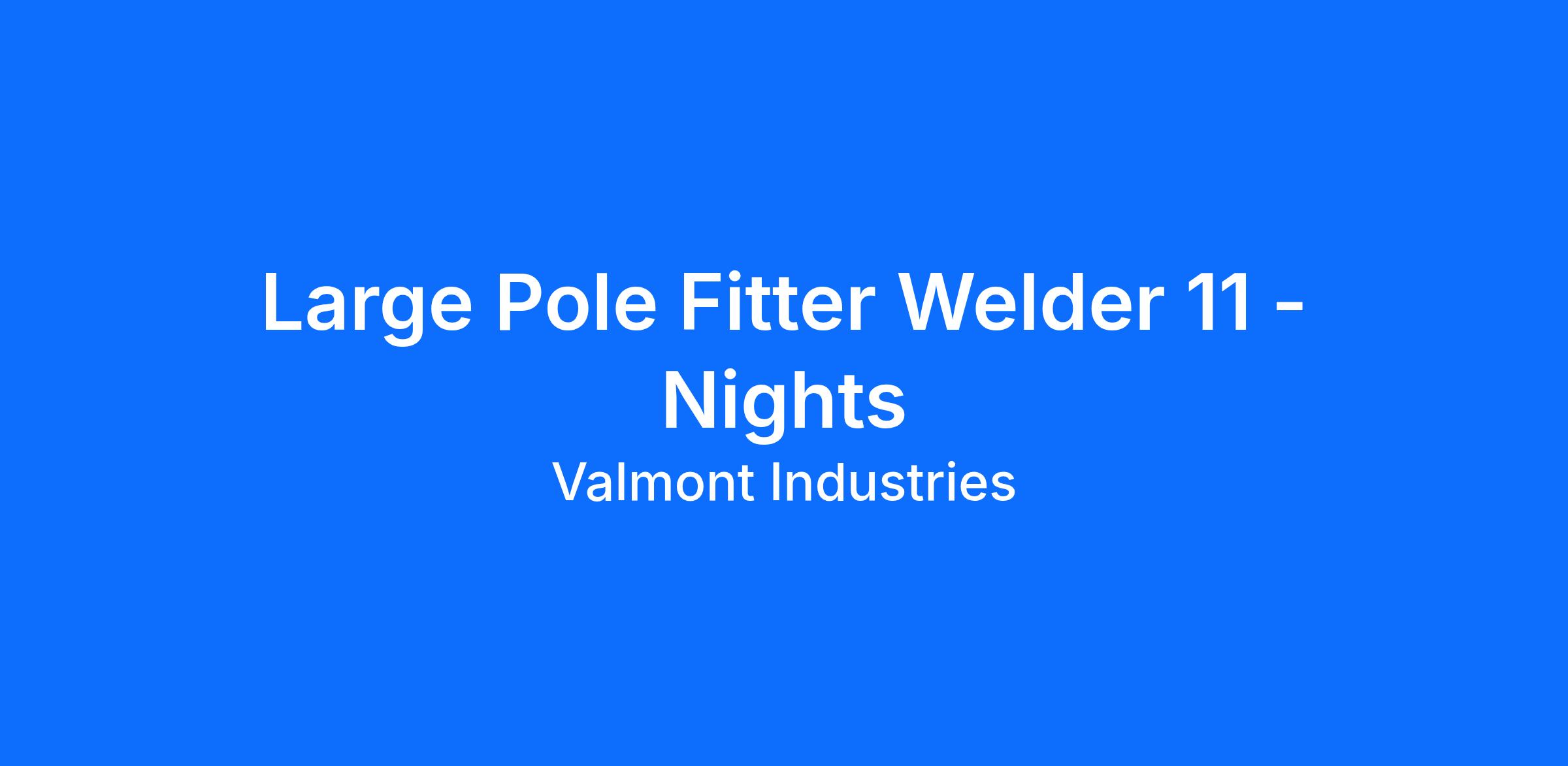 While working under the direct supervision of the Production Supervisor in the Large Pole Department the Fitter Welder 11 assembles products of the unit by tack welding various small parts to pole shafts using the GMAW, FCAW, SAW, welding process. This is done within prescribed codes, and according to prescribed procedures, specifications, and drawings. Will be required to weld out products to meet code requirements including ultrasonic testing.