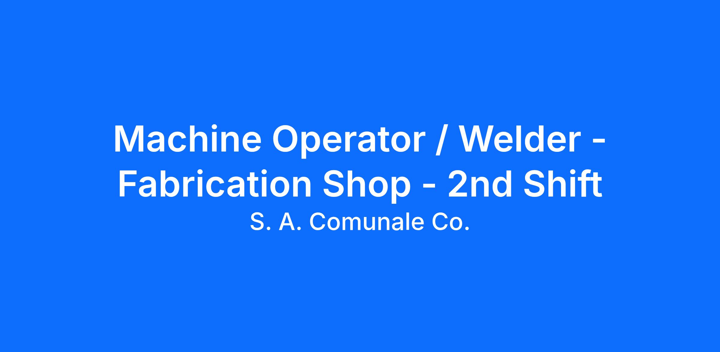 S.A. Comunale is seeking a Machine Operator / Welder. The Machine Operator / Welder works closely with other fabrication shop employees to prepare pipe and other materials needed to complete each job the company is working on. The Welder will perform all welding functions within the fabrication shop while adhering to all safety measures. Work is expected to be done in a timely and efficient manner. This position is represented by the Plumbers and Pipefitters Local Union #219.