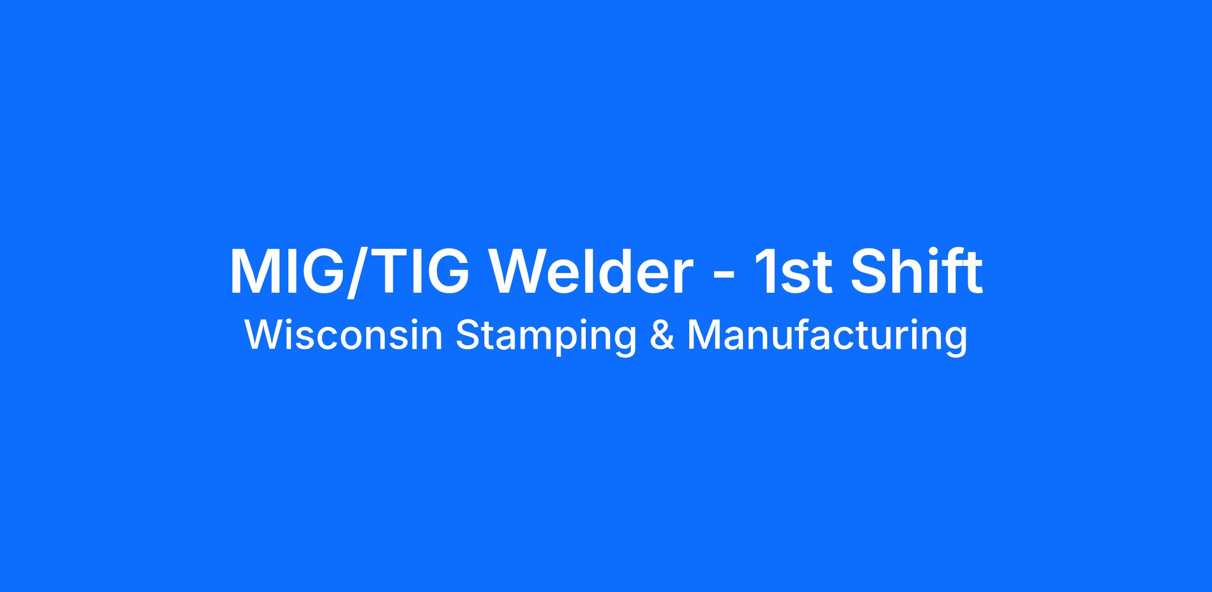 MIG/TIG Welder - 1st shift or 2nd shift