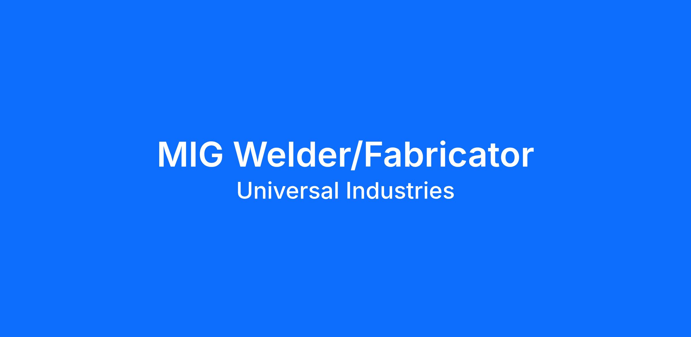 Universal Industries, Inc. is looking for an experienced welders to work in our fast paced sheet metal manufacturing environment. This position will weld carbon steel, stainless steel and galvanized material based on predesigned blue prints.