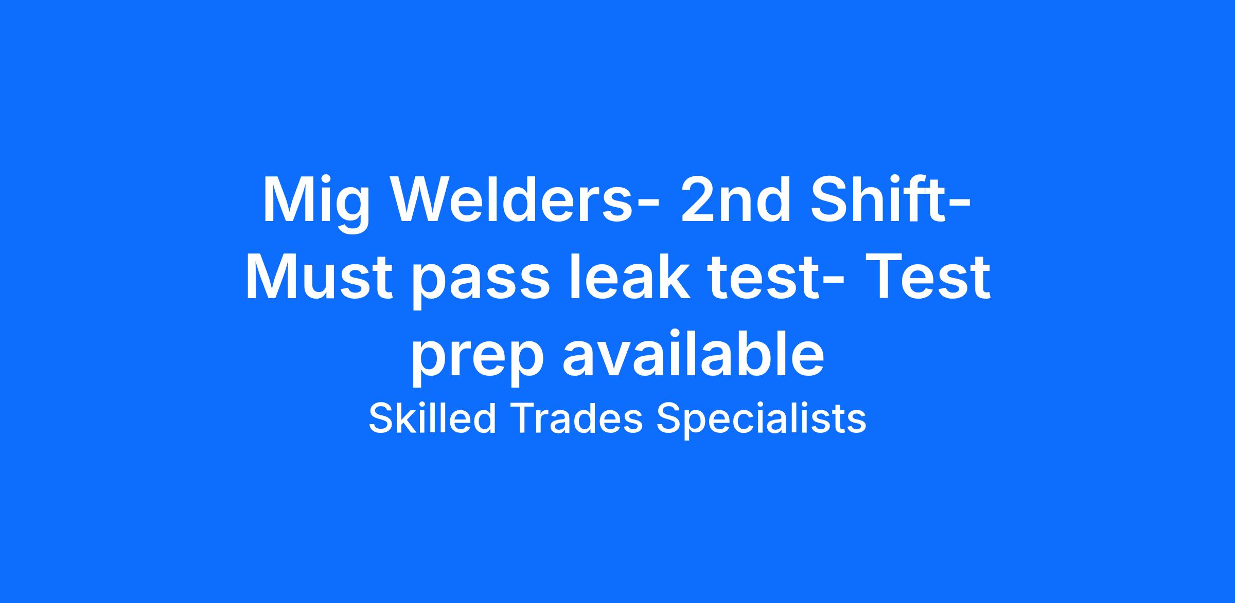 - Experience as a MIG Welder or similar role and ability to continue learning