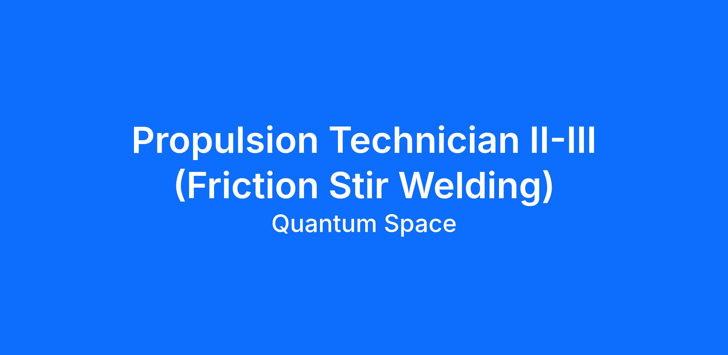 This role is primarily focused on friction stir welding, with opportunities to support propulsion system assembly, integration, and testing as needed.