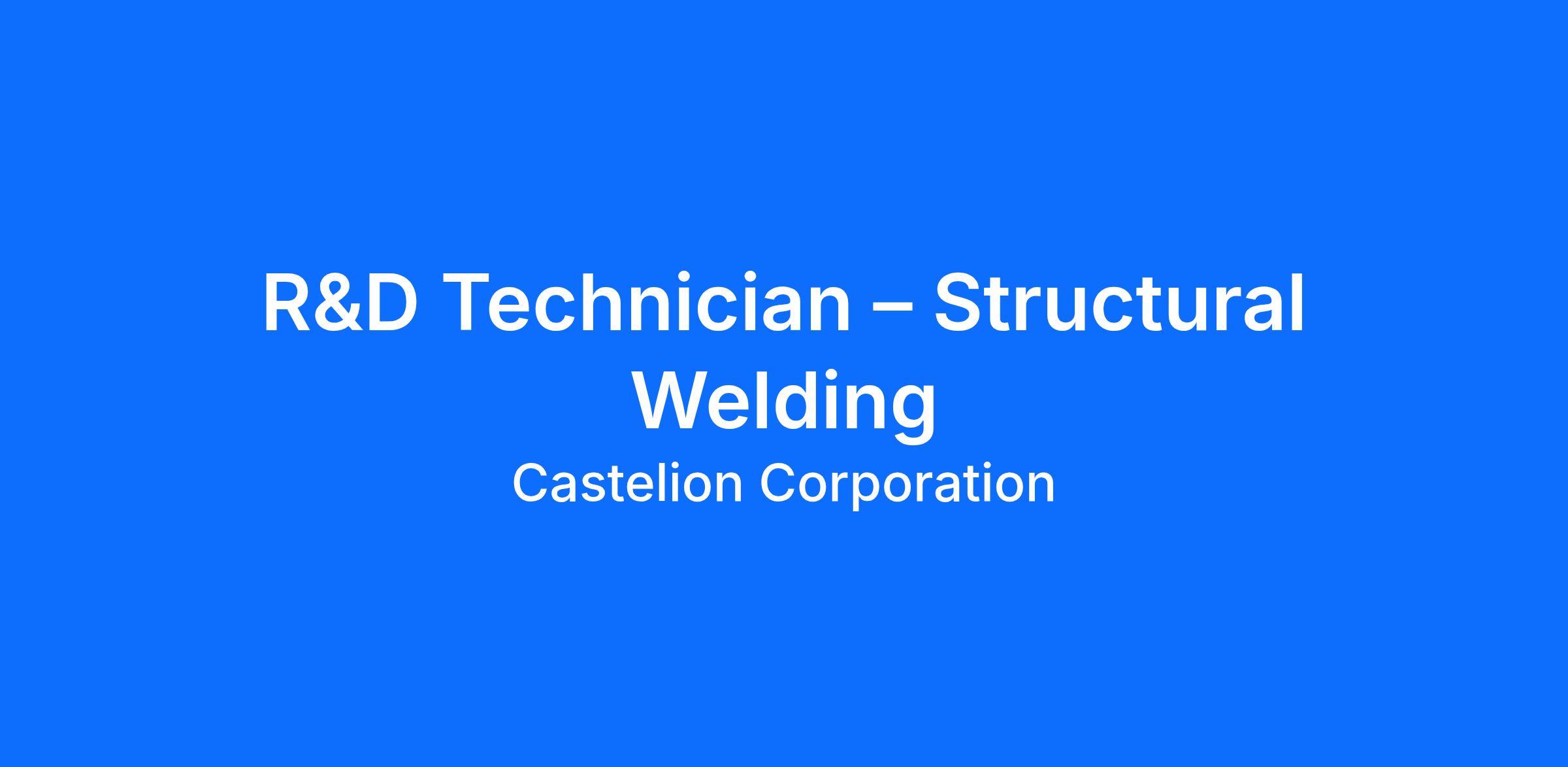 R&D Technician – Structural Welding