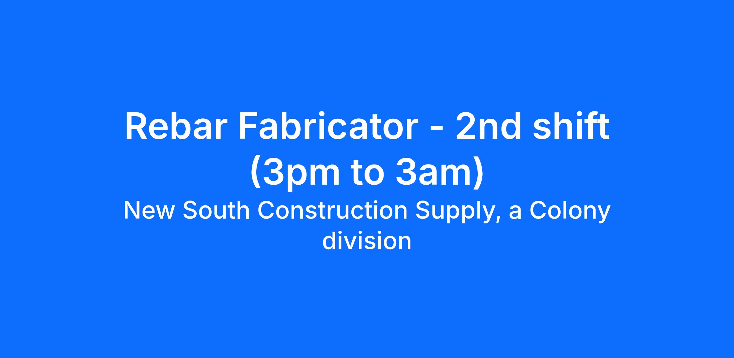 The Rebar Fabricator at Colony Hardware is responsible for assisting in the fabrication of steel reinforcement bar (rebar) through the use of a rebar shear line machine and bending machine. You will handle, cut, bend, and stage the material for customer pickups or delivery to jobsites.
