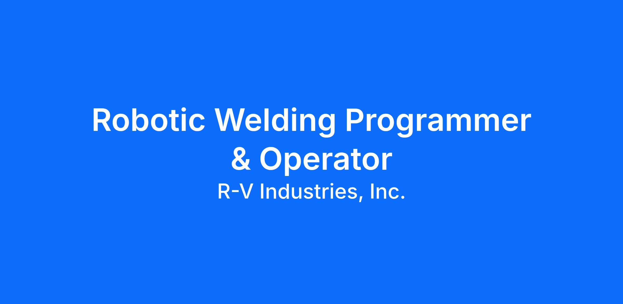 This position will be responsible for developing robotic welding programs and tooling for welded parts and be responsible for running the robotic welding cell during production activities for all market areas that R-V Industries serves.