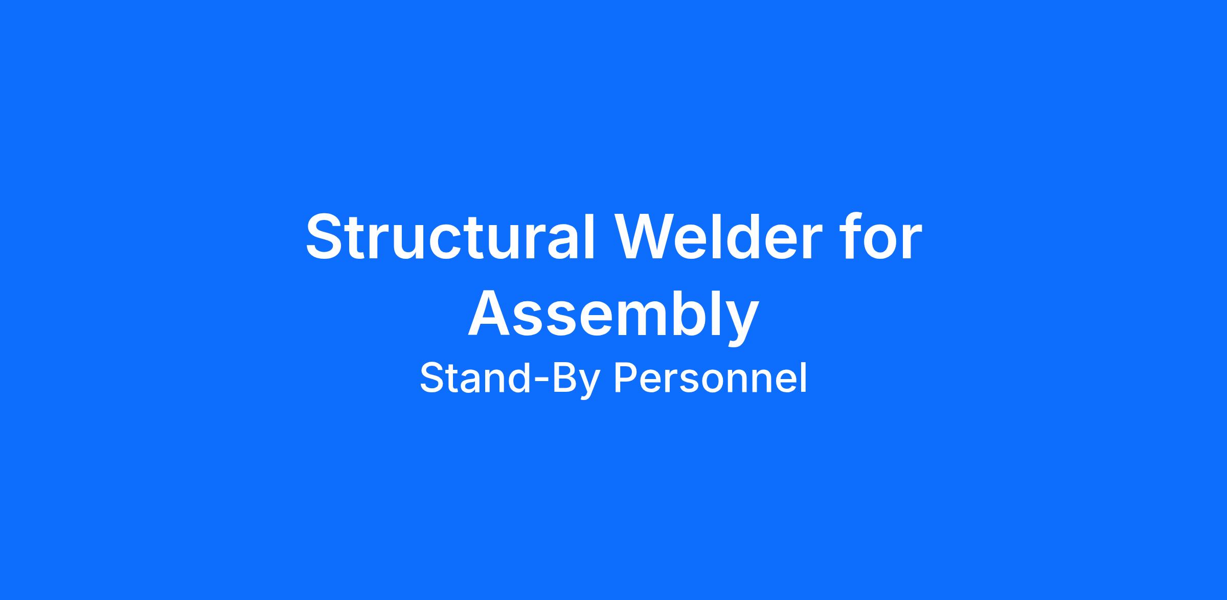 This is a strong opportunity for skilled professionals seeking consistent hours and long-term potential in a Structural Welder for Assembly role.