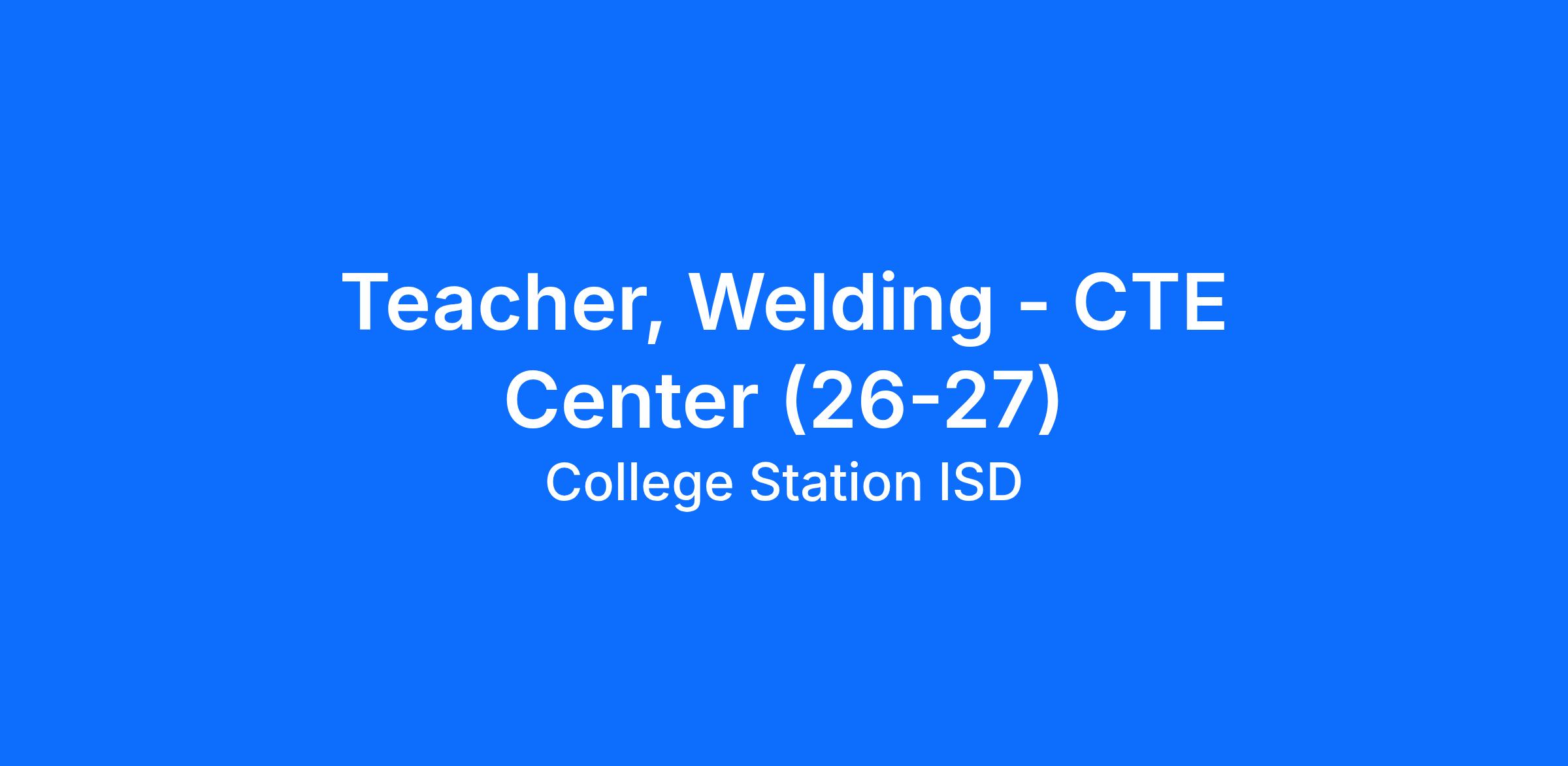 - Extensive industry experience in welding or a related field may be considered in place of a teaching certificate, as College Station ISD is a District of Innovation and can issue local certification based on relevant work experience.