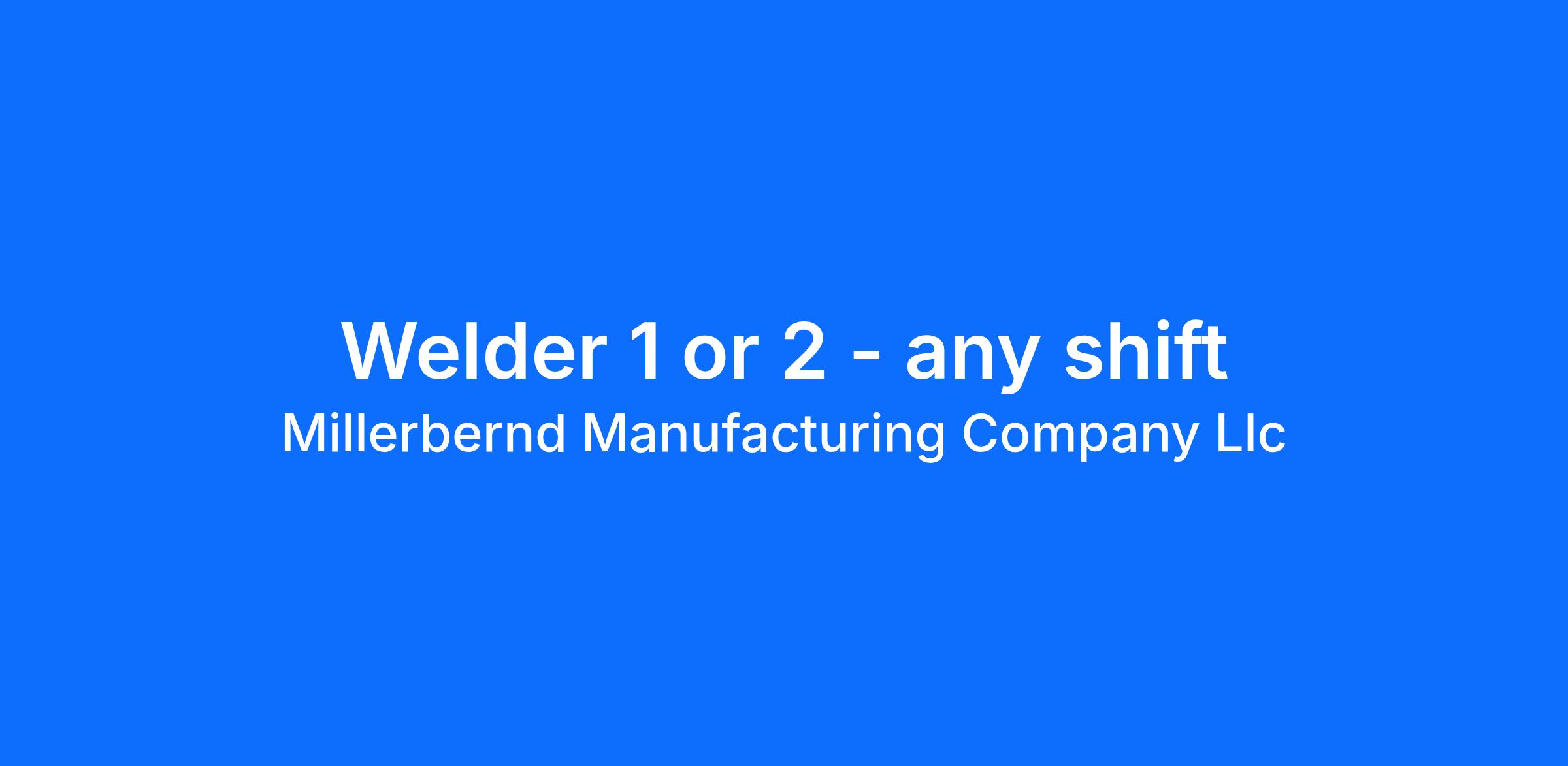 - Must be AWS GMAW certified - Welders employed with Millerbernd will have the opportunity to complete all weld certification requirements including AWS certifications within 14 days of employment