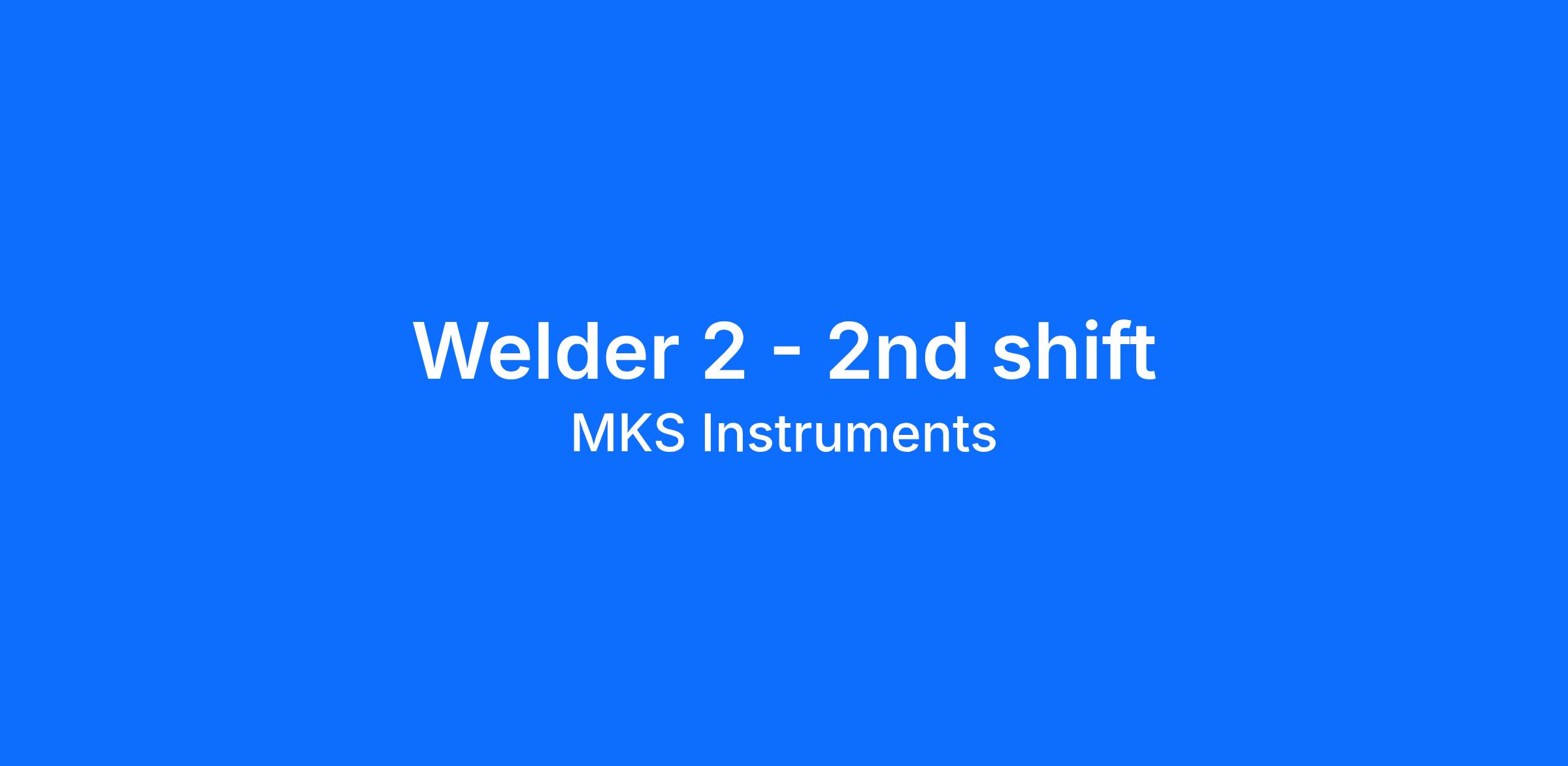 As a Welder 2 at MKS, you will partner with the Welding department, Engineering, Quality Control to fabricate various MKS products. In this role, you will report to the Welding Supervisor