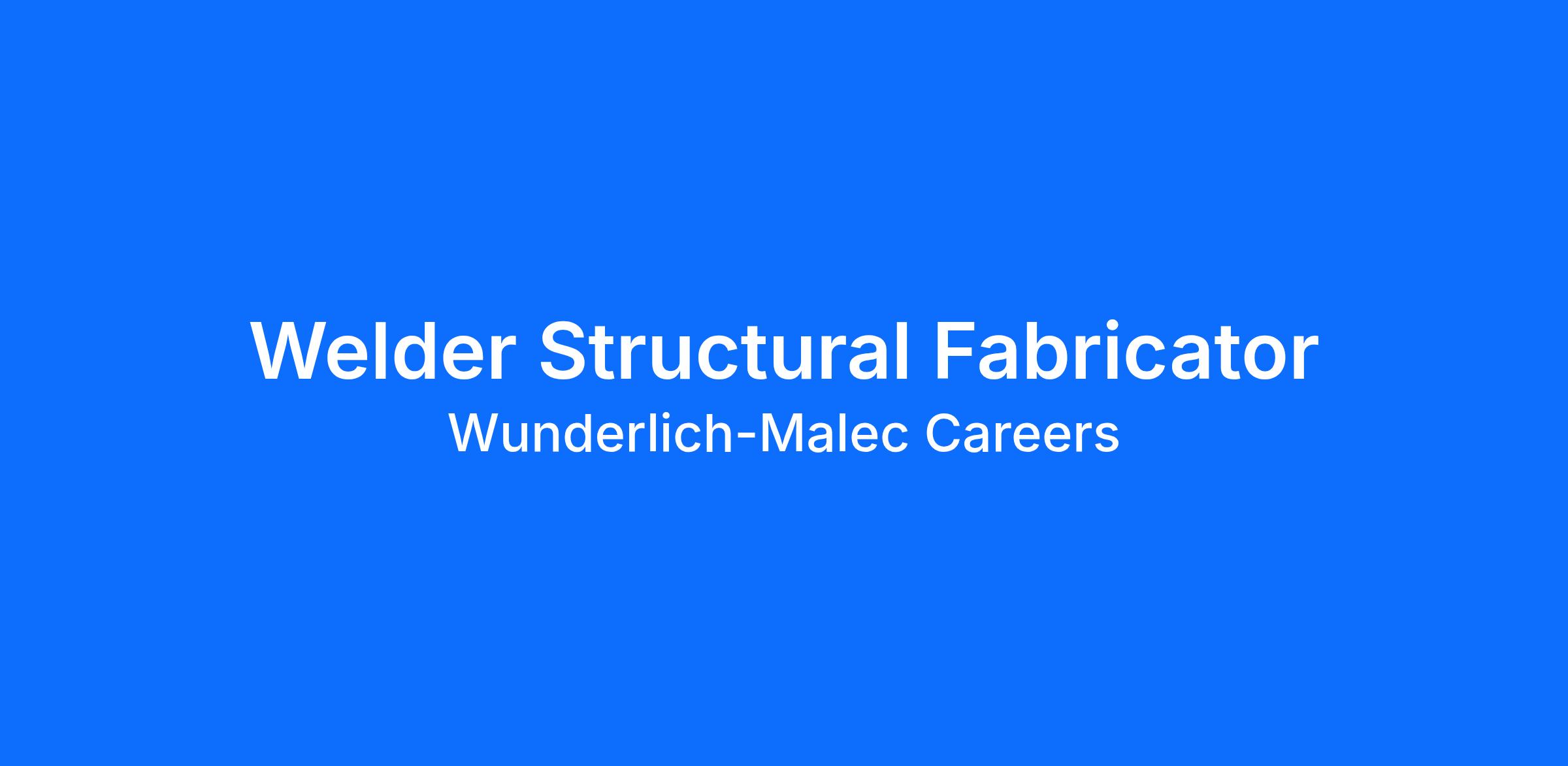 Wunderlich-Malec (WM) is 100% employee-owned and one of the largest and most well-established engineering companies in the United States. We have a Welder Structural Fabricator position available in Baldwin, FL. This position is responsible for modular building assembly, skidded control system fabrication, and general mechanical tasks.