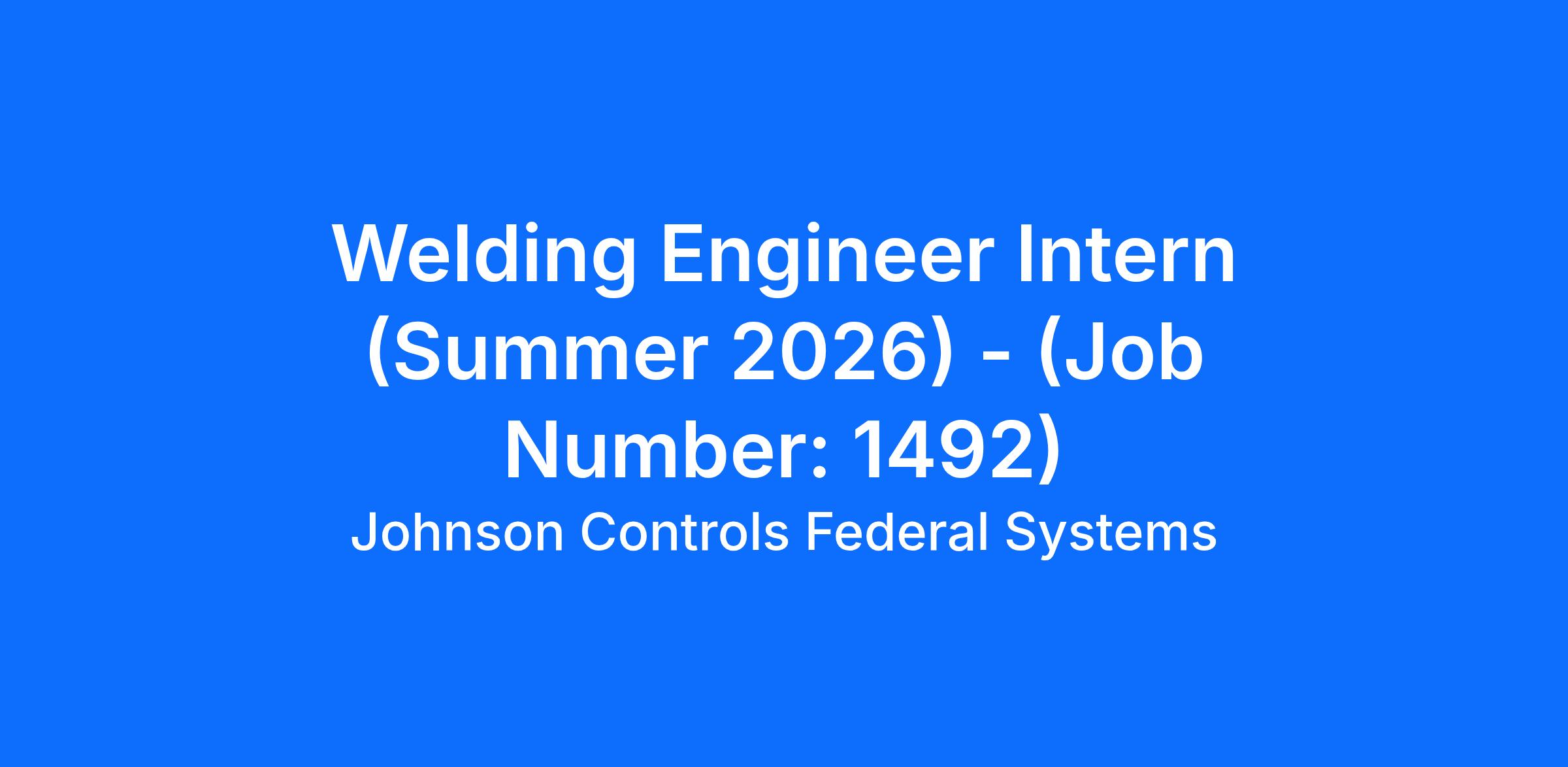 Internship duration would run May 2026, through August 2026. Dates may vary depending on semester end/start for the year. Internship candidates must be enrolled in a Bachelor’s Degree program in the field of Welding Engineering. Selected intern(s) will be exposed to numerous disciplines throughout the manufacturing plant to learn product, manufacturing processes, part flow, procedure development, and inspection to help the student(s) expand their skills in the manufacturing field. Intern(s) would not be subject to PTO and would have to abide by the JCI attendance policy with the exception of a pre-scheduled vacation. The Intern(s) must abide by all JCNS safety policies. Interns will be expected to participate in / lead projects involving.